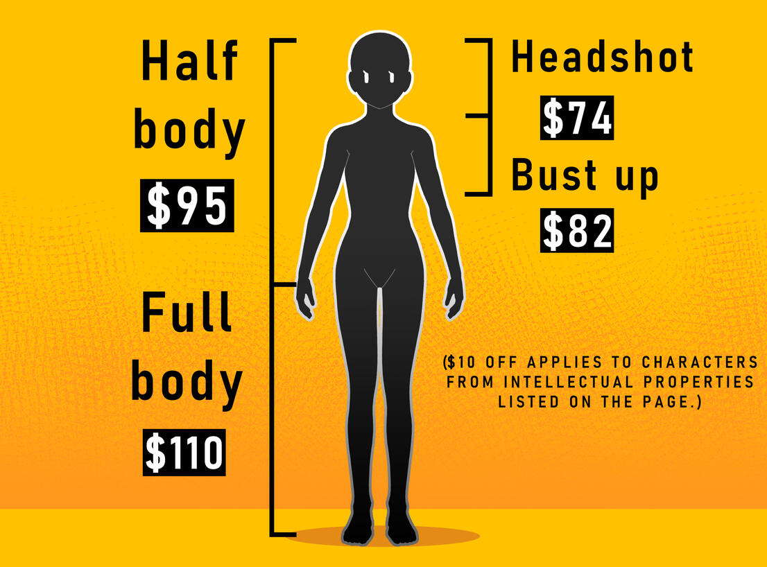 Half Body $95 & Full Body $110Headshot $74 & Bust Up $82